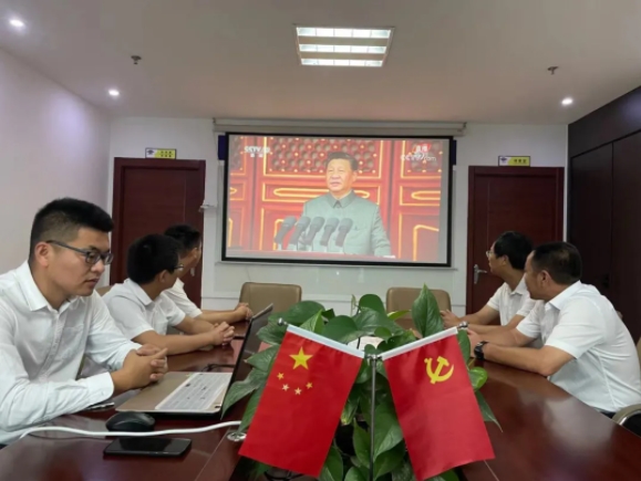 7月1日上午8时,庆祝中国共产党成立100周年大会在北京天安门广场隆重举行。中共中央总书记、国家主席、中央军委主席习近平发表重要讲话。公司组织各部室、各项目部通过各新闻网站、新媒体平台同步观看直播盛况。一百来年,我们不变的是满腔热血报祖国;一百年来,我们不忘的是探索人民幸福路;一百年来,我们坚持的是民族复兴谋发展。让我们紧密团结在以习近平同志为核心的党中央周围,以更加饱满的青春姿态,更加坚定的理想信念,更加团结的民族精神,向着第二个百年目标奋力拼搏、努力奋斗!